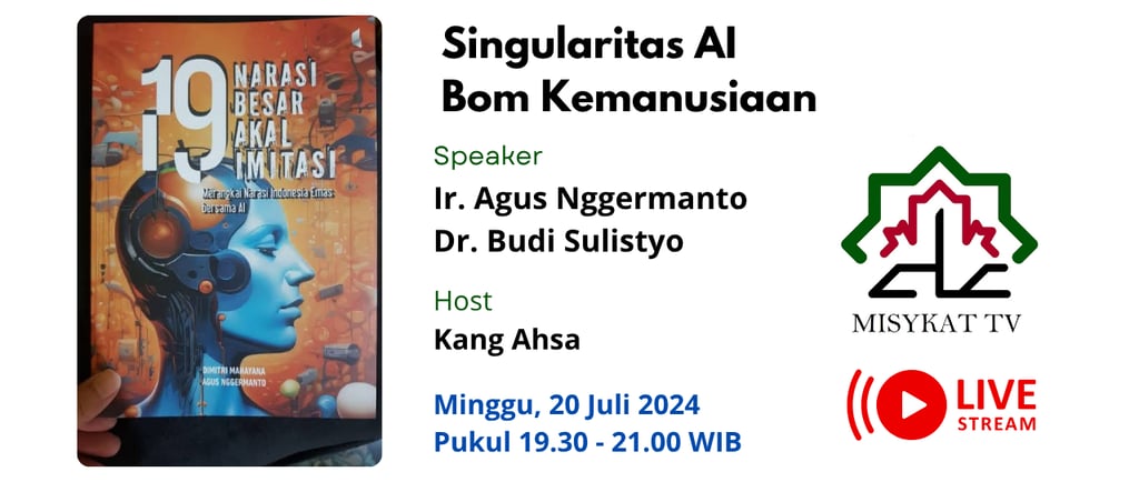 Kajian Futuristik buku 19 Narasi Besar Akal Imitasi ini digelar online melalui YouTube Misykat TV. Narasumber oleh Ir Agus Nggermanto dan Dr Budi Sulistyo. Dipandu oleh Kang Ahsa.